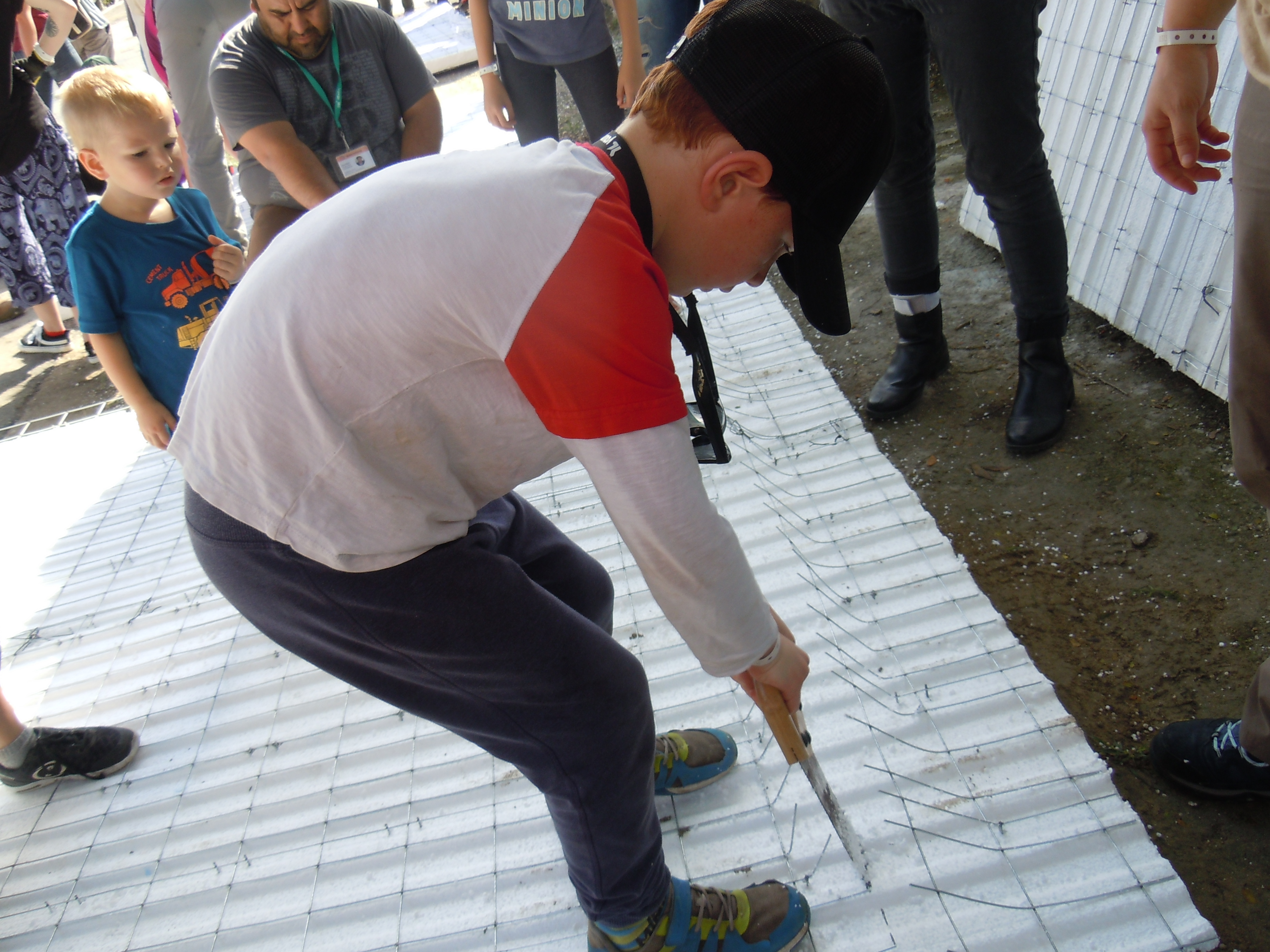 The Amor houses in this area are made from panels of polystyrene – yes, polystyrene! – covered in wire. They are trimmed to the right size and shape and then wired together into a house, firmly tied onto metal rods cemented into the foundations of the house, before being reinforced with more wire and then covered in several layers of thick concrete (also known as stucco) inside and out. This then dries hard to form a very hard, durable supporting structure – an exoskeleton – and leaves a house strong enough to be a hurricane shelter. The polystyrene within acts as insulation, keeping the houses cool in the hotter months, and warm when it’s cooler – although it was so very hot working on this house it’s hard to imagine that this is ever necessary!